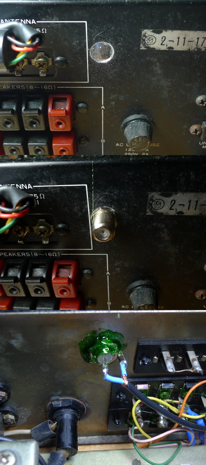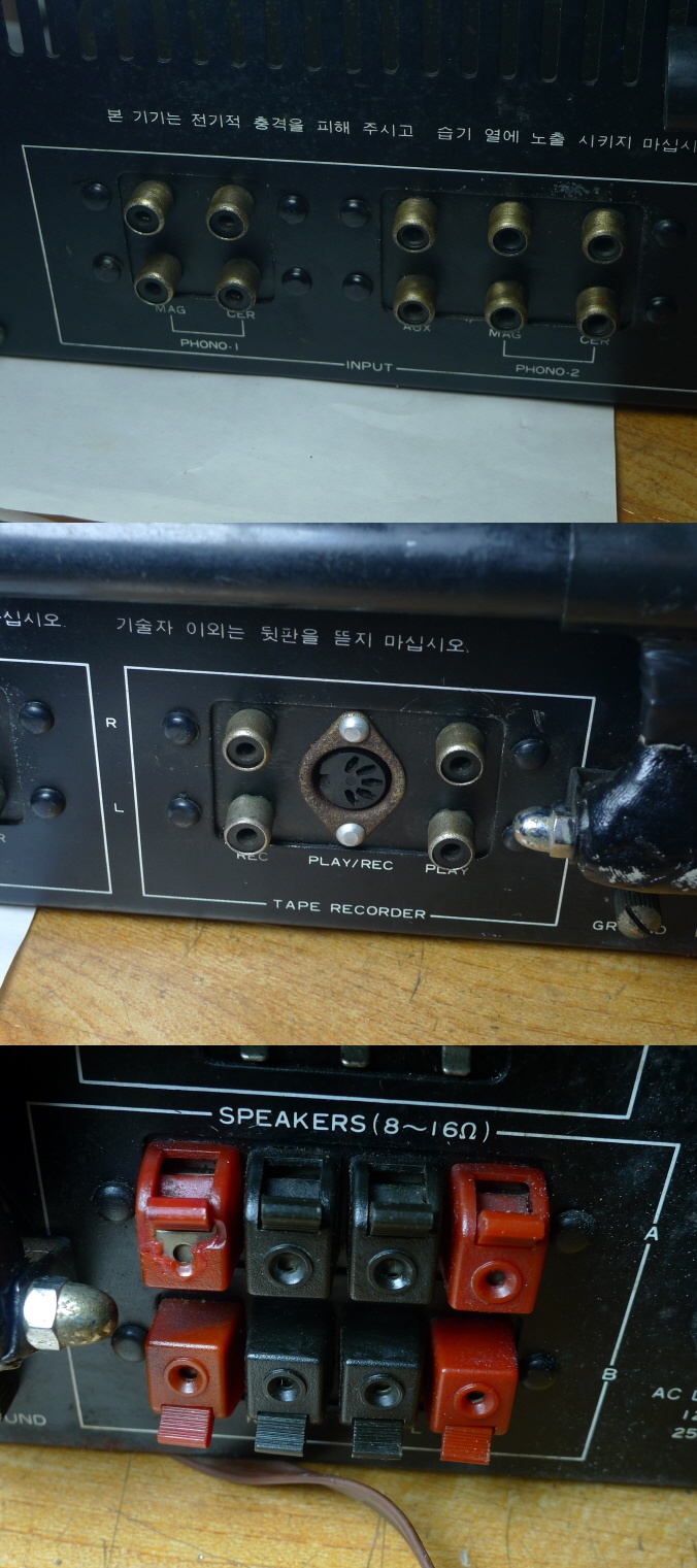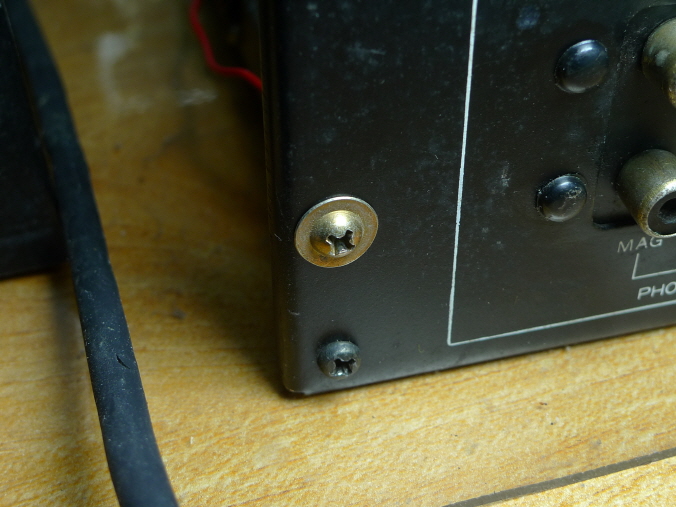 구식 기기여서 포노 쪽 별도 접지 단자가 없어서 조금 불편하지만 사진처럼 옆쪽 볼트를 풀어서