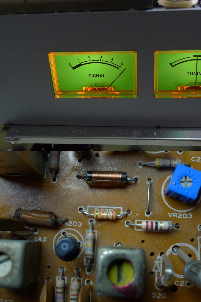 이 튜너는 시그널 미터 레벨 조정 어저스터가 없는데 프론트엔드 수리후 시그널 미터가 꺽여 넘어갑니다.