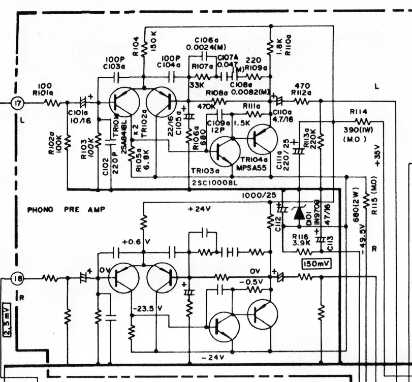 초단에 입력 커플링 케페시터가 필요없는 FET가 들어가는 인켈 950 3석 포노.