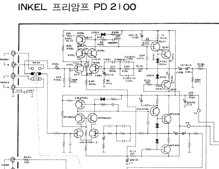 초단 FET 차동 입력,푸시풀 전류단의 인켈 970 포노.