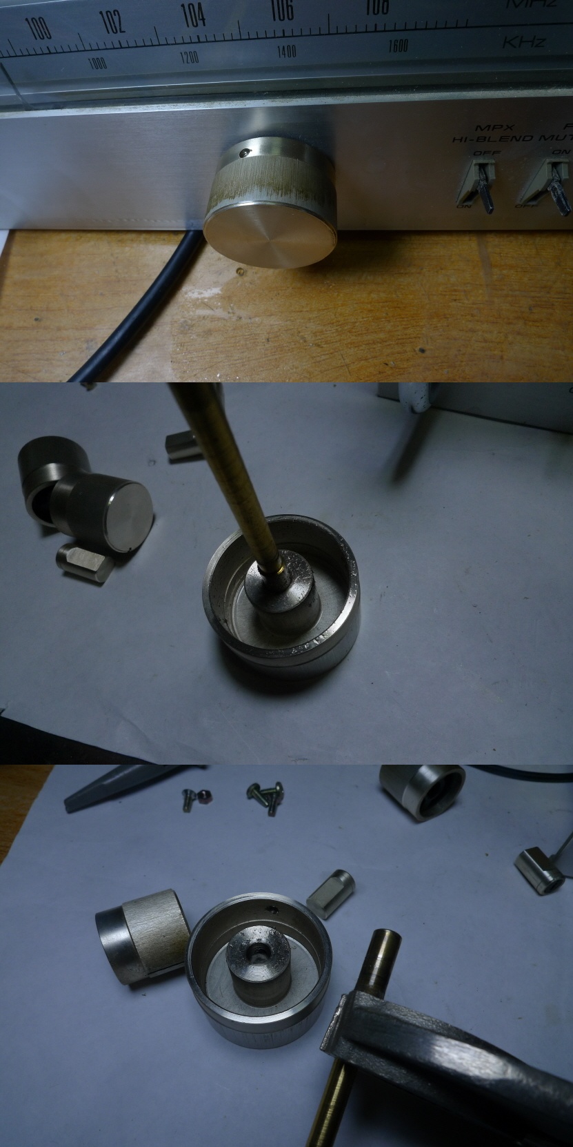 패널 안쪽에 있는 셀렉터 고정 너트가 풀려서 덜렁거려 패널을 떼야 하는데 튜닝 노브가 쩔어서